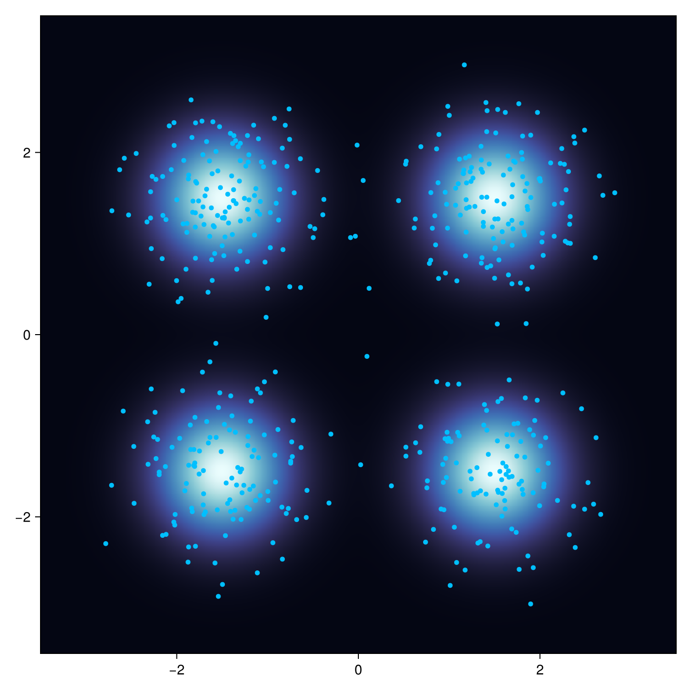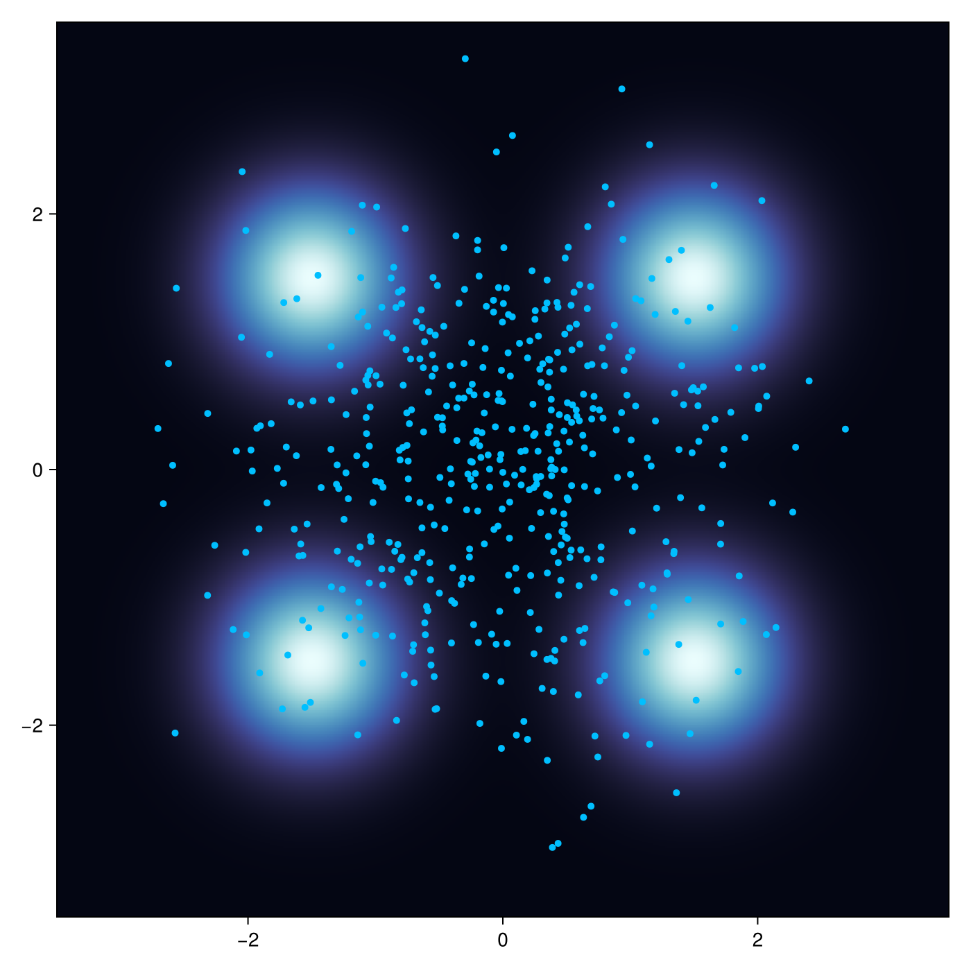 pc, ctx = init(ρ, dynamics; n_particles=512)We can access particle positions by get_samples and visualize the their current position: